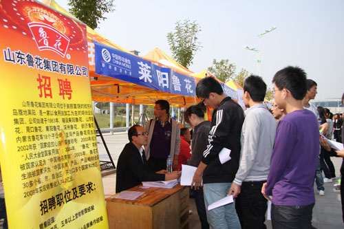 10月16日,晴空万里、阳光明媚,我院第二届校企合作专场招聘会在中心大道隆重举行。本次招聘会共吸引了218家用人单位来我校招贤纳才,其中包括世界500强企业中石化,国内知名企业兴业银行、青岛澳柯玛、鲁南药业、浄雅集团,粮食行业领军企业中粮米业、鲁花集团等多家企业,共提供近350个工作岗位。