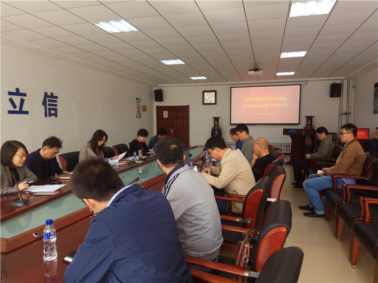 10月9日下午,我校召开了2019年度校内实训室建设及仪器设备购置项目论证会,党委副书记刘艳蔚、学术委员会专家代表、各职能处室负责人等九位专家作为评委参加了本次会议。