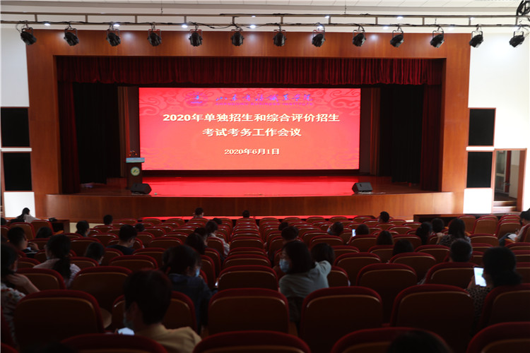 6月1日下午,我校在音乐厅组织召开了2020年单独招生和综合评价招生考试考务工作会议,考试考务工作领导小组组长、主考杨新春,副组长、副主考张云生,各系推荐选派的评委老师、纪检人员,以及教务处、纪检监察室、网络信息中心等相关负责同志,共计200余人参加了会议,会议由教务处处长于邢香主持。