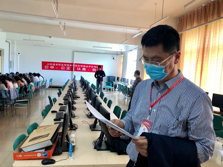 考试当天,山东省教育考试院乔元庆处长莅临我校,对此次考试工作进行全方位的检查指导。单独招生和综合评价招生工作领导小组对各个阅卷室进行了巡视。阅卷组织严密有序,阅卷老师认真负责,后勤保障安全有序。学校各项准备工作充分,操作规范,得到了领导的高度肯定。