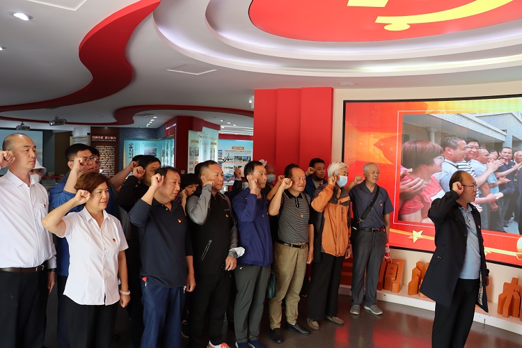 活动现场全体党员面对党旗,重温入党誓词,用庄严的声音,表达了不忘初心、牢记使命、永远跟党走的决心。教师党支部组织了现场党小组会,大家围坐一起,就“如何开展党史教育、乡村振兴、发挥党组织和党员作用”等话题展开交流座谈。