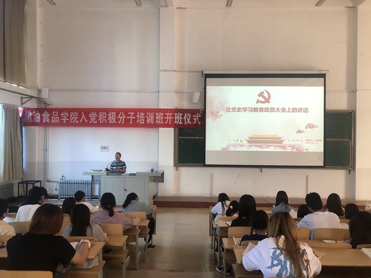 为促进“我为师生办实事”实践教育活动稳步推进,扎实提升新一批入党积极分子的政治站位和政治素养,确保成为中国共产党的坚实后备军,确保发扬新时代新青年的精气神儿,粮油食品学院党总支分党校于5月25日下午在二号教学楼一号阶梯教室举行第22期入党积极分子培训班开班仪式。学生党支部书记付晓辉作开班动员讲话,党总支书记孙龙湖、党总支纪检委员杨倩倩出席本次开班仪式。